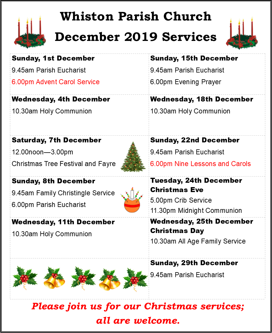 All are welcome to join us for any of these services at this special time of year. Thank you.