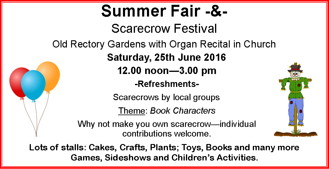 The Summer Fair is taking place on the above date, in Whiston Parish Hall on Well Lane - 11am until 3pm. Features and attractions will include lunches, cakes, books, a tombola and bric-a-brac. So let's all pray at the very least for good weather and God's blessings upon this event.